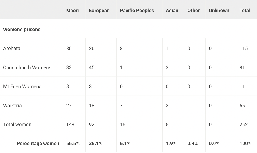 Department of Corrections. (n.d.). Inmate Ethnicity by Institution. https://www.corrections.govt.nz/resources/statistics/corrections-volumes-report/past-census-of-prison-inmates-and-home-detainees/census-of-prison-inmates-and-home-detainees-2003/2-inmate-numbers-by-institution/2.4-inmate-ethnicity-by-institution